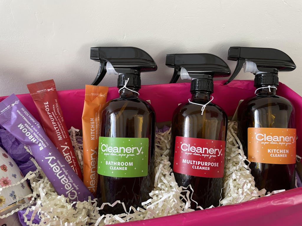 I like the cleanery products all except the glass one. I especially like the glass bottles that you provide