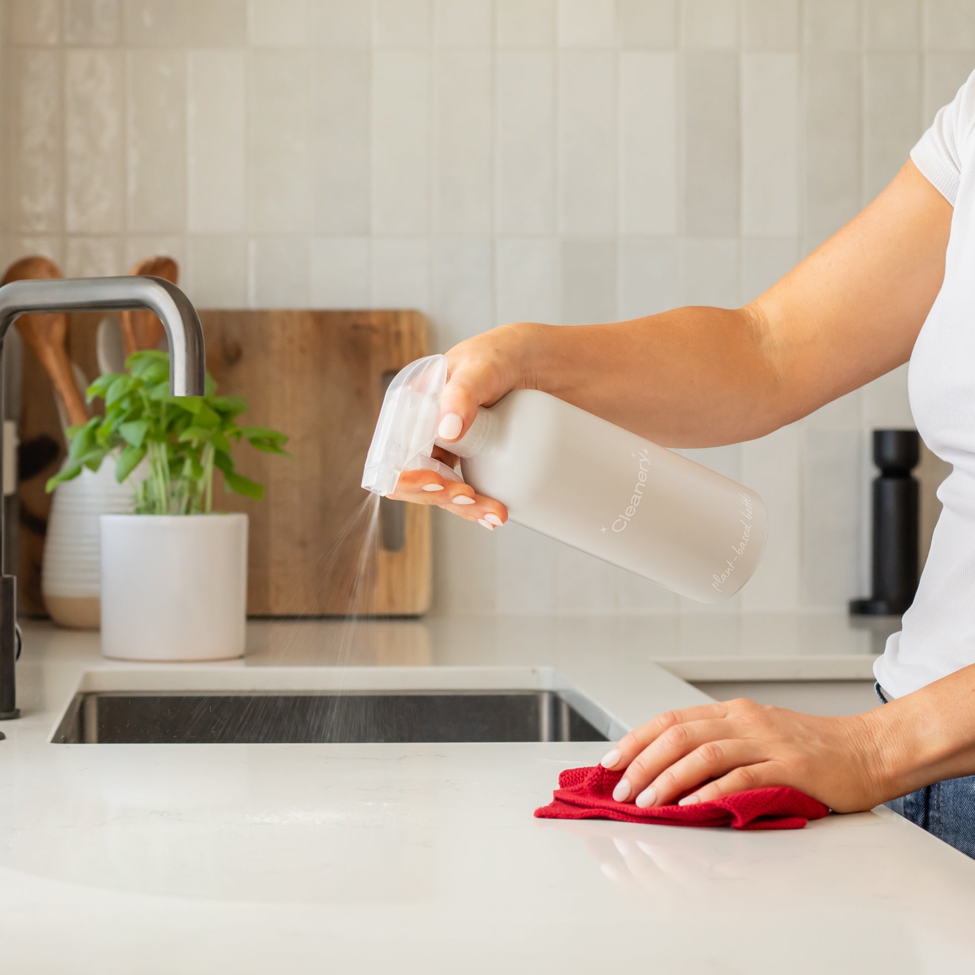 For our cleaning range, spray and wipe using a cloth as you would with traditional cleaning sprays.
